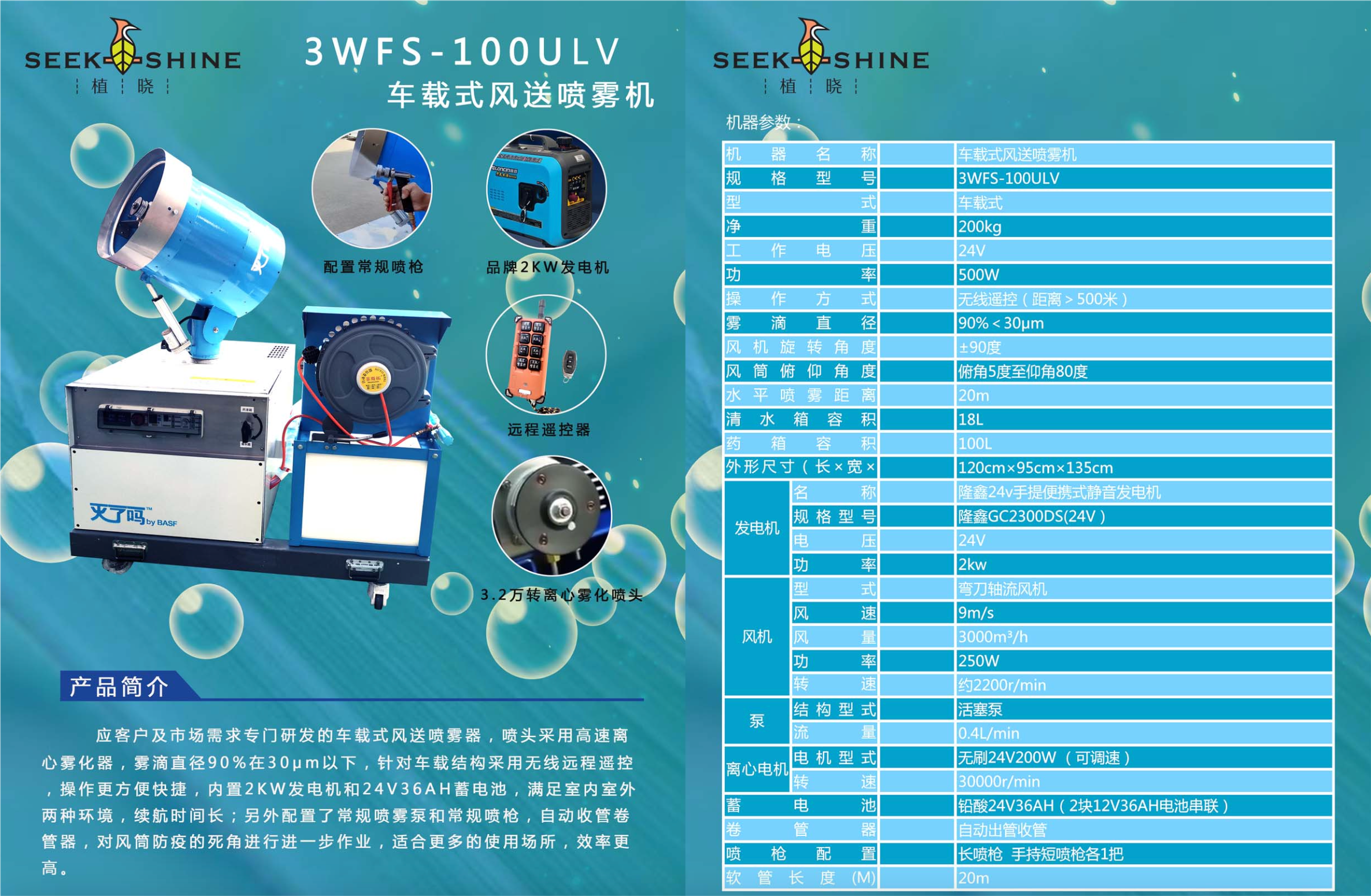 植晓3WBD-60ULV车载超低量喷雾器,适用于高效、精准的车载喷雾作业。
